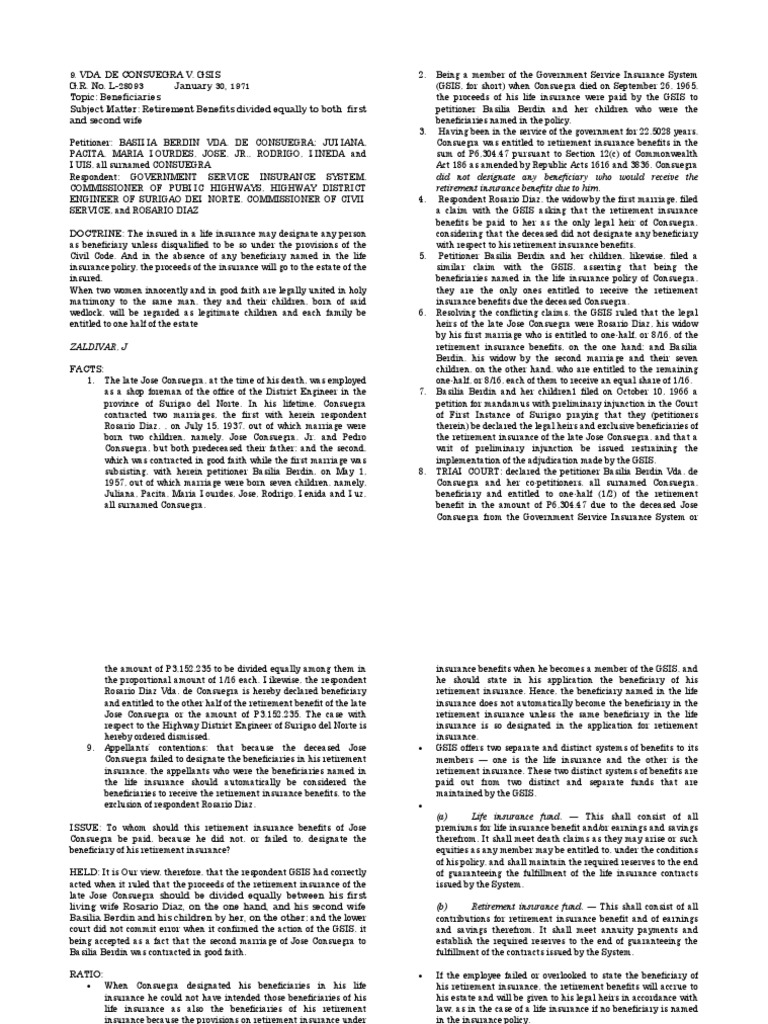 Vda De Consuegra V Gsis Life Insurance Insurance